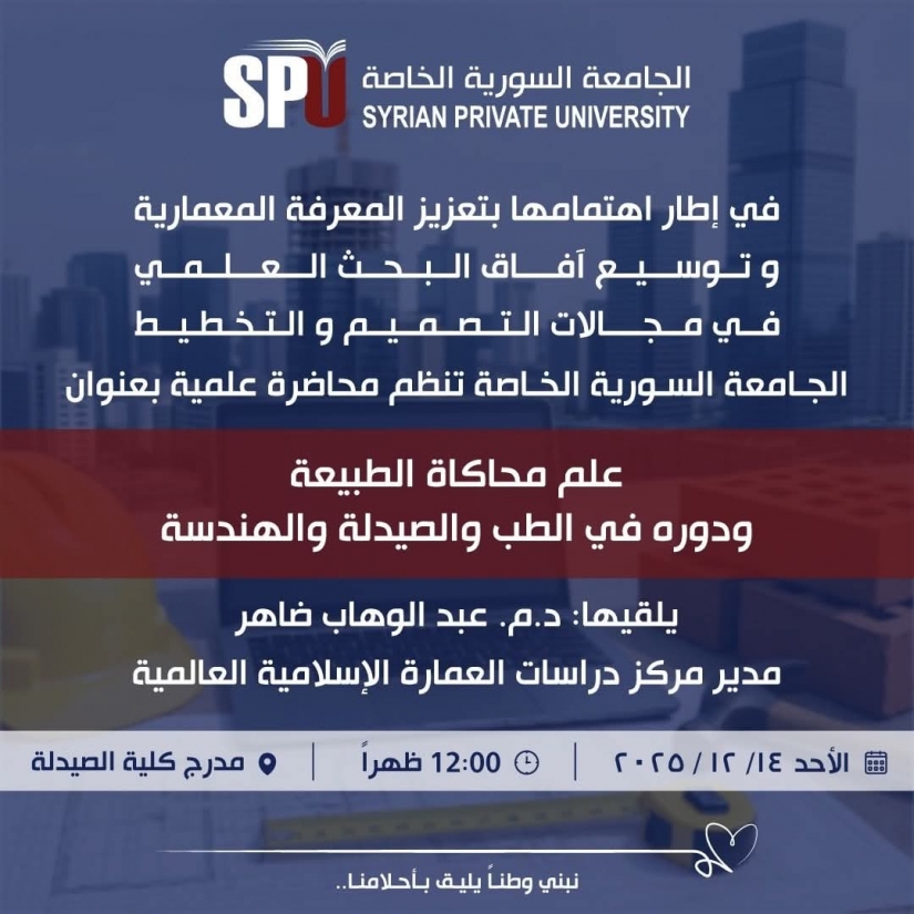 إعلان محاضرة علمية بعنوان "علم محاكاة الطبيعة وتطبيقاته على تصميم المباني وتخطيط المدن"