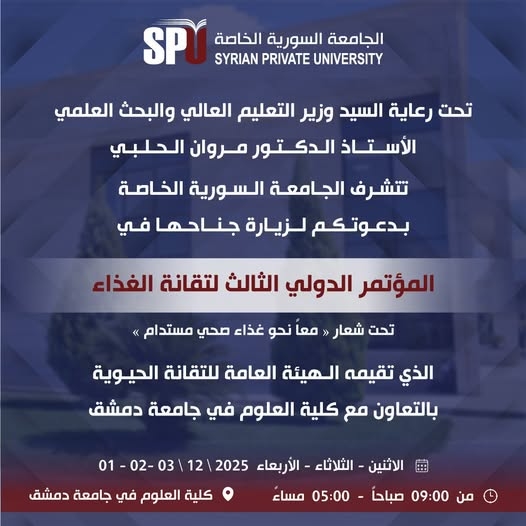 Participation of the Syrian Private University in the Third International Conference on Food Technology