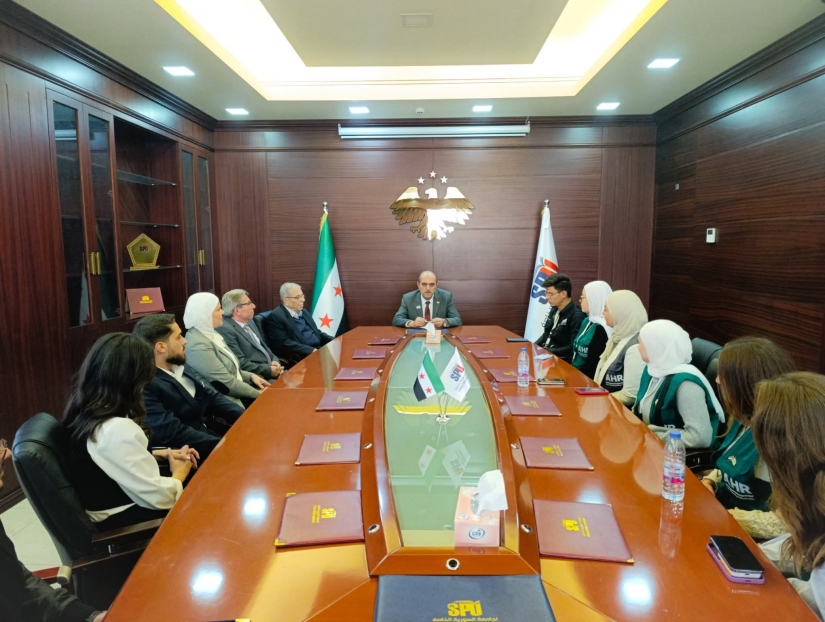 اجتماع السيد رئيس الجامعة السورية الخاصة الأستاذ الدكتور عبد الرزاق الحسين مع وفد من مؤسسة نيوفيرستي الألمانية